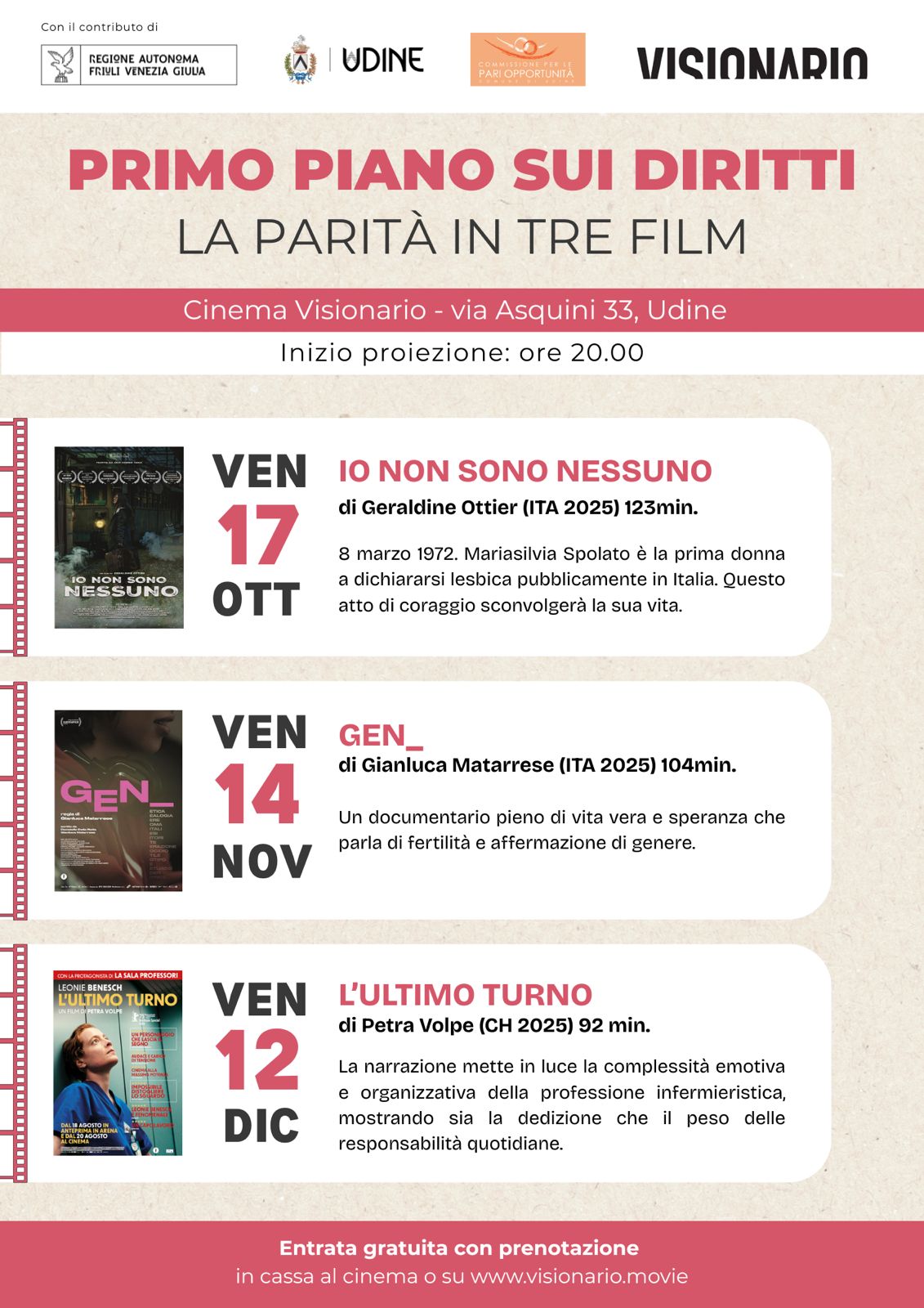 venerdì 12 dicembre alle 20:00 sarà trasmessa l'ultima proiezione del cineforum in collaborazione con il Visionario sarà "L'ultimo turno" di Petra Volpe (2025), per una riflessione sulle professioni sanitarie, sulla sanità pubblica e sul lavoro delle donne. Biglietto gratuito in cassa al cinema o sul sito www.visionario.movie