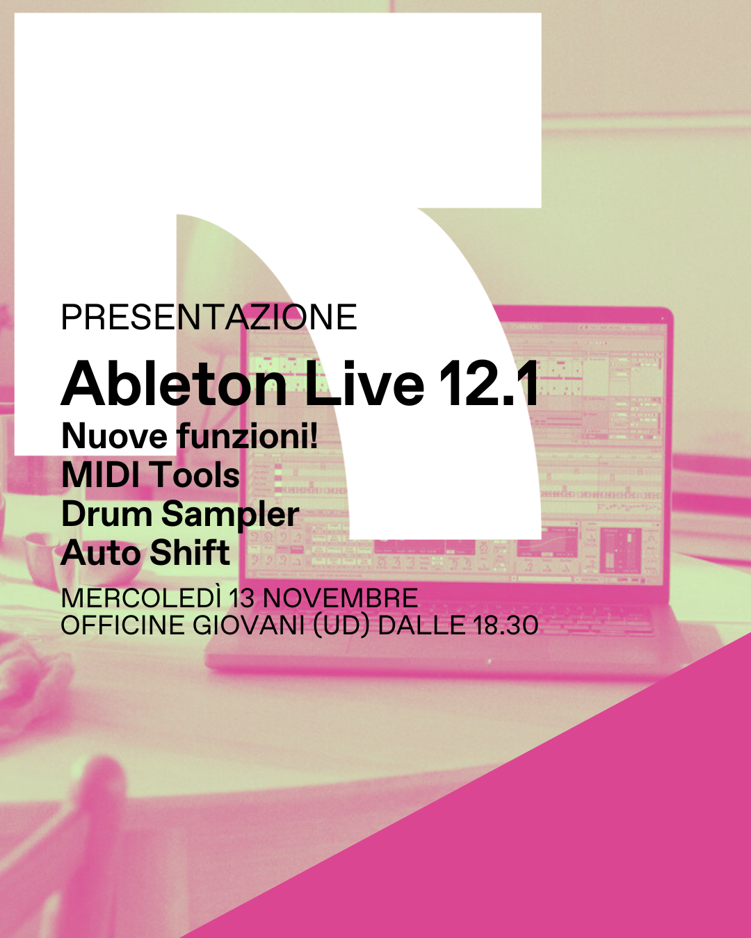 Vieni a @officinegiovanihub per un incontro libero guidato dal docente certificato Ableton Walter Sguazzin.